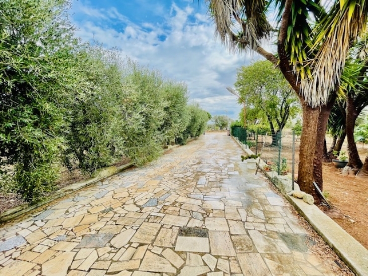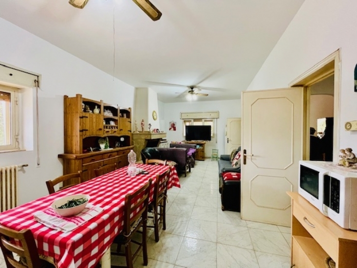 Nella splendida campagna locale, zona residenziale, servita da illuminazione e servizi pubblici a circa 3km dal centro abitato, villino con terreno di pertinenza. Estensione del terreno circa 6000 mq, ricco di piante ornamentali, alberi da frutta ed uliveto in produzione della tipologia Leccino. Presente pozzo artesiano, fossa imof. Piazzale in cocci di pietra, proprietà interamente delimitata da recinzione in rete metallica.