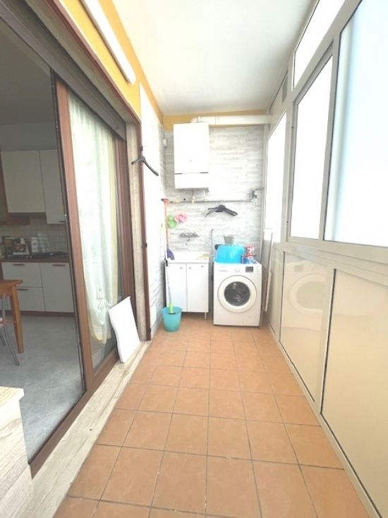 All'interno di un plesso residenziale in zona ben servita, ricca di attività e servizi, appartamento posto al terzo piano ( presente ascensore ) con cantina di pertinenza posta nel vano interrato di circa 6 mq. Abitazione molto luminosa, dotata di due ampie terrazze-balconi vivibili, così composta: comodo ingresso-disimpegno, soggiorno, pranzo, corridoio, camera da letto matrimoniale, camera da letto per ragazzi/ospiti, ripostiglio, servizio con vasca e doccia. Doppio impianto di riscaldamento, quello attualmente in funzione, centralizzato ma autonomo, più già predisposto impianto con radiatori, due pompe di calore, portoncino blindato, infissi esterni triplo vetro in legno e pvc, zanzariere. Lavori di manutenzione straordinaria riguardanti la facciata e i balconi realizzati circa 8 anni fa.