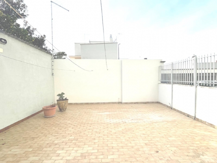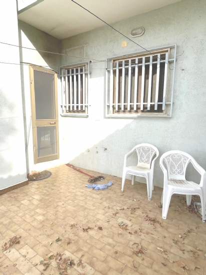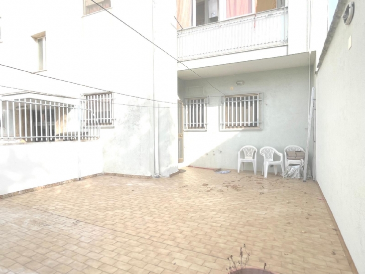 Ad angolo tra via Brindisi e via Vincet Van Gogh, con fermata autobus linea e centro commerciale a due passi, abitazione al piano terra facente parte di un contesto residenziale risalente agli anni 90' caratterizzata da una grande terrazza a livello di proprietà esclusiva. Così disimpegnato: ingresso con porta blindata, pensilina, soggiorno, zona pranzo con tinello semi-chiuso, uscita su terrazza pavimentata dai molteplici usi, corridoio, camera da letto matrimoniale, camera da letto per ragazzi/ospiti, ripostiglio, servizio con box doccia. Termoautonomo. Luminoso, gran potenziale.